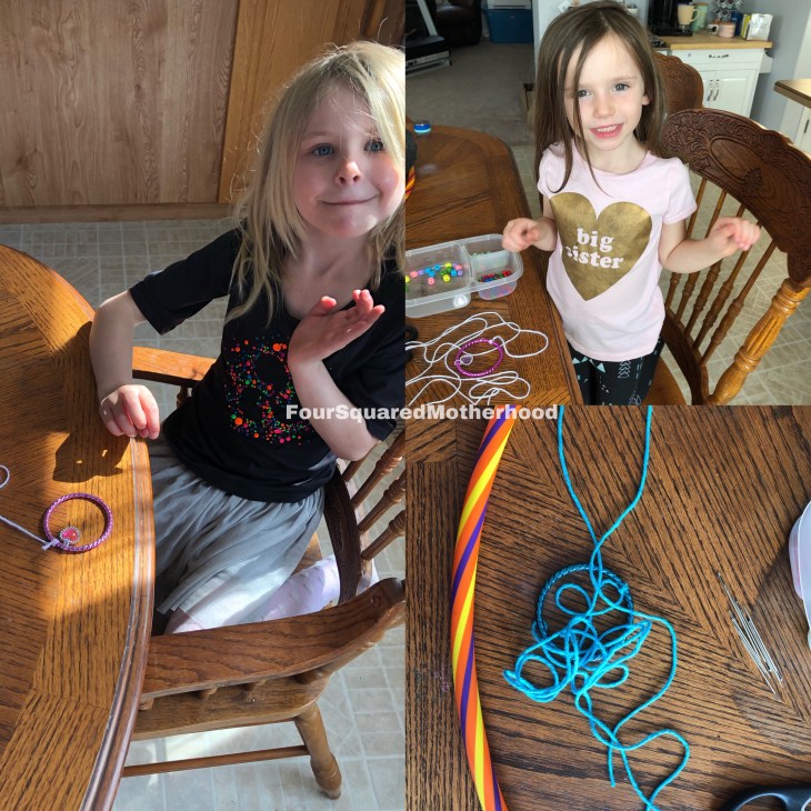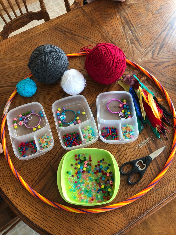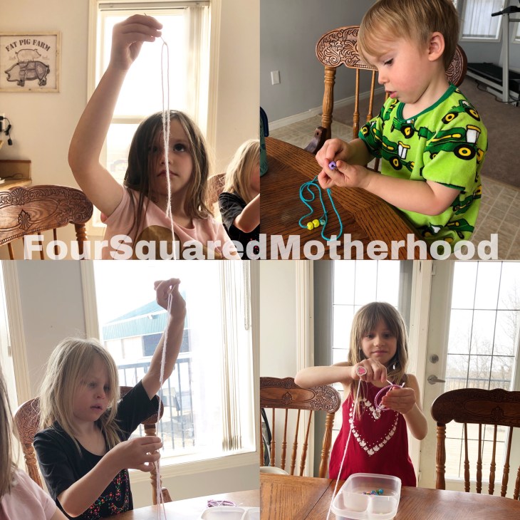 1. Round up your supplies and sort it all out. I separated all the beads and set up a work space for each child just to make it easier for me and less fighting.